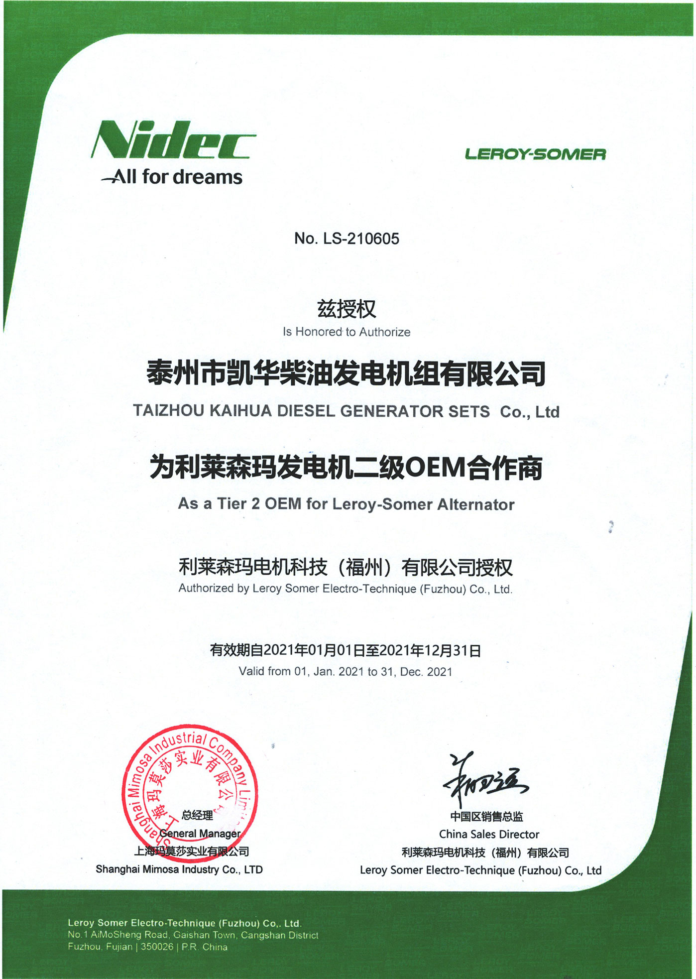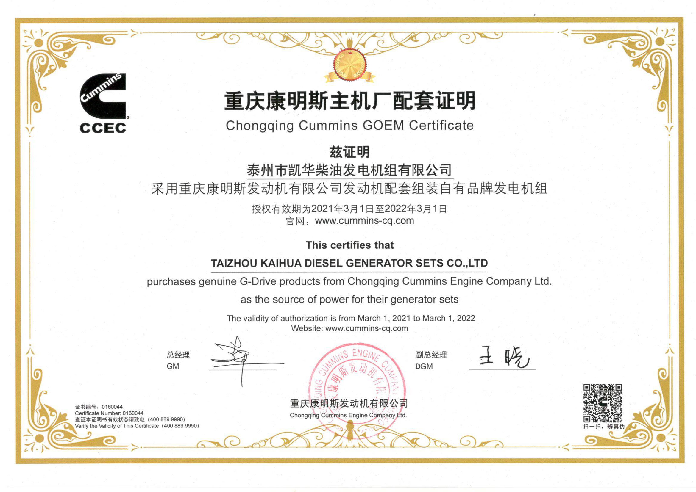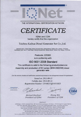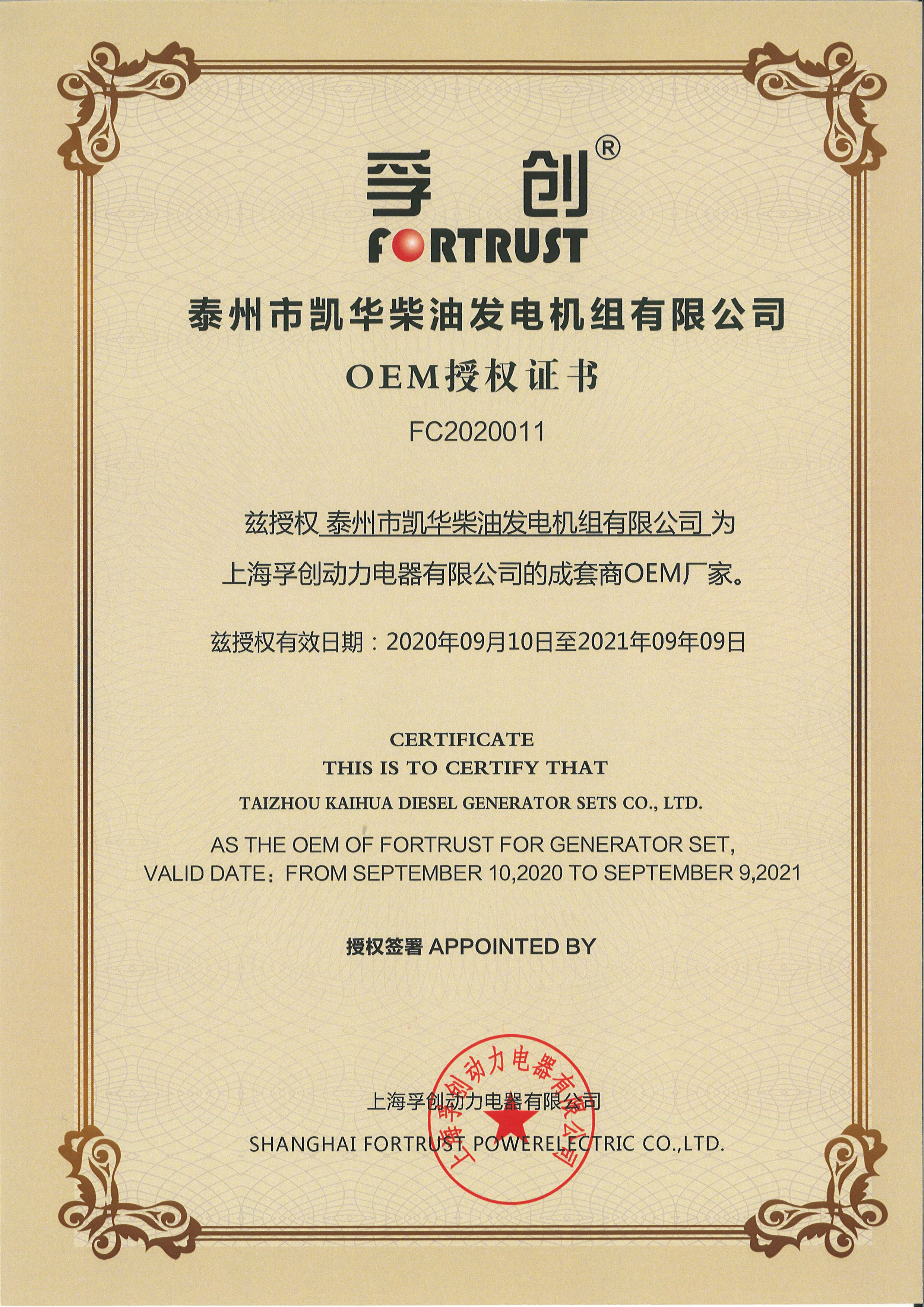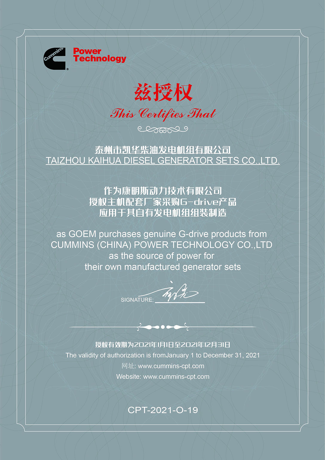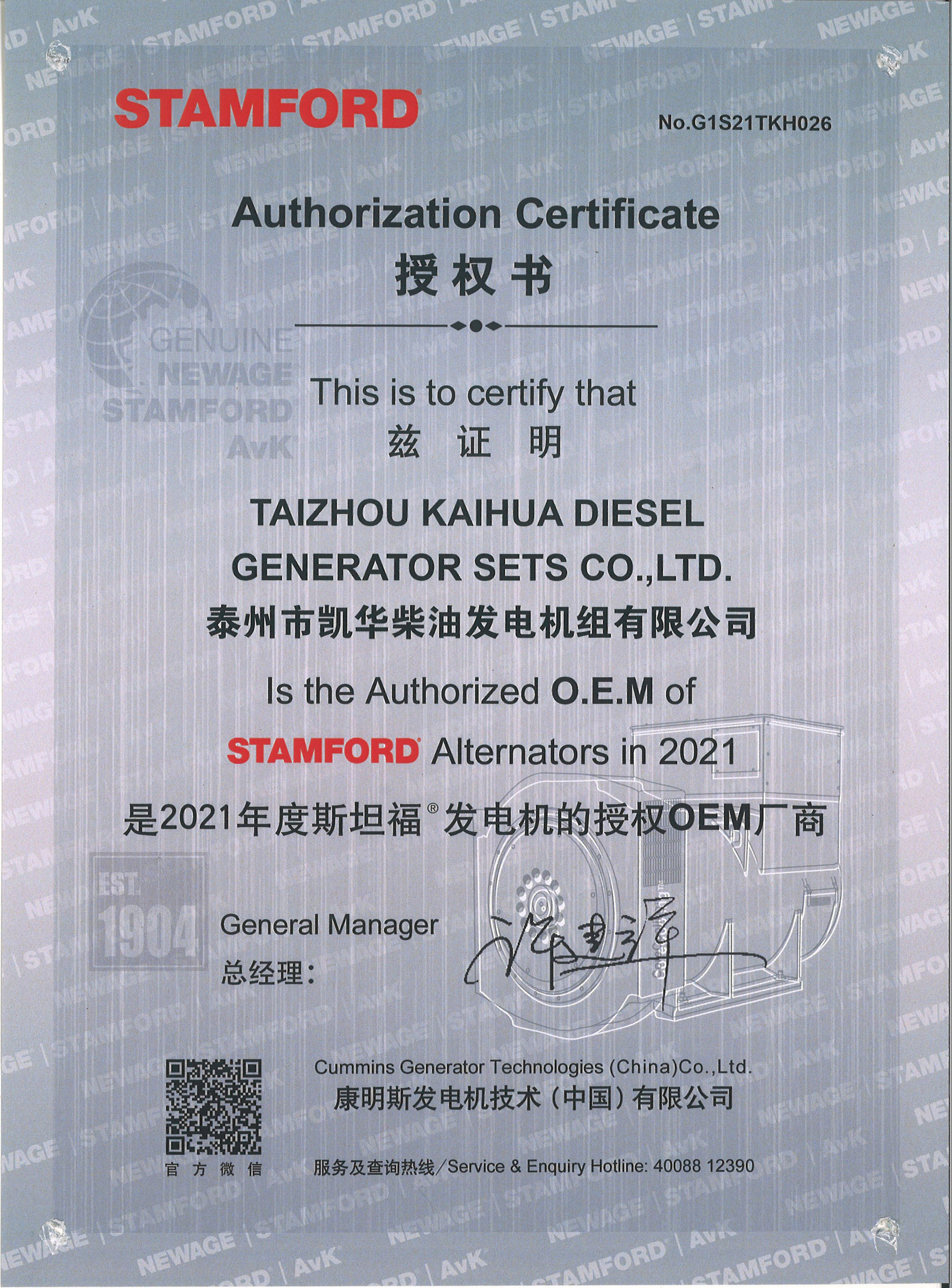 泰州市凱華柴油發(fā)電機組有限公司創(chuàng)建于2003年,是一家集柴油發(fā)電機組燃氣發(fā)電機組的研發(fā)、生產(chǎn)、銷售為一體的高新技術(shù)民營企業(yè),公司座落于“漢唐古郡,淮海名區(qū)”,具有“鳳凰城”美稱的祥泰之州——江蘇省泰州市,地處中國經(jīng)濟最發(fā)達的長三角經(jīng)濟圈,水陸空立體交通,地理位置十分優(yōu)越。公司目前注冊資本金11800萬元人民幣,生產(chǎn)基地占地六十畝,現(xiàn)有各類高素質(zhì)員工一百多名,專業(yè)技術(shù)人員達46人,其中高級技術(shù)人員16人,年銷售額近6億元。 公司主營產(chǎn)品:3~3000KW陸用柴油發(fā)電機組,15~600KW移動拖車電站,12~1000KW船用應急柴油發(fā)電機組,各種靜音型、中高壓、多機并聯(lián)、燃氣等特種機組以及進口系列柴油發(fā)電機組,可滿足不同客戶的一切電力需求,還可滿足用戶不同電壓、不同頻率的要求。凱華公司是康明斯品牌的授權(quán)代理商,專業(yè)生產(chǎn)供應康明斯柴油發(fā)電機組。